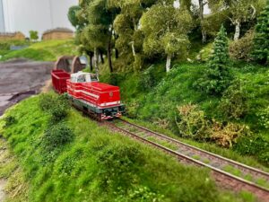 Toto fantastické rozložení je postaveno z Model Scene travnaté rohože, keře, statické trávy, některých smrků a modřínů